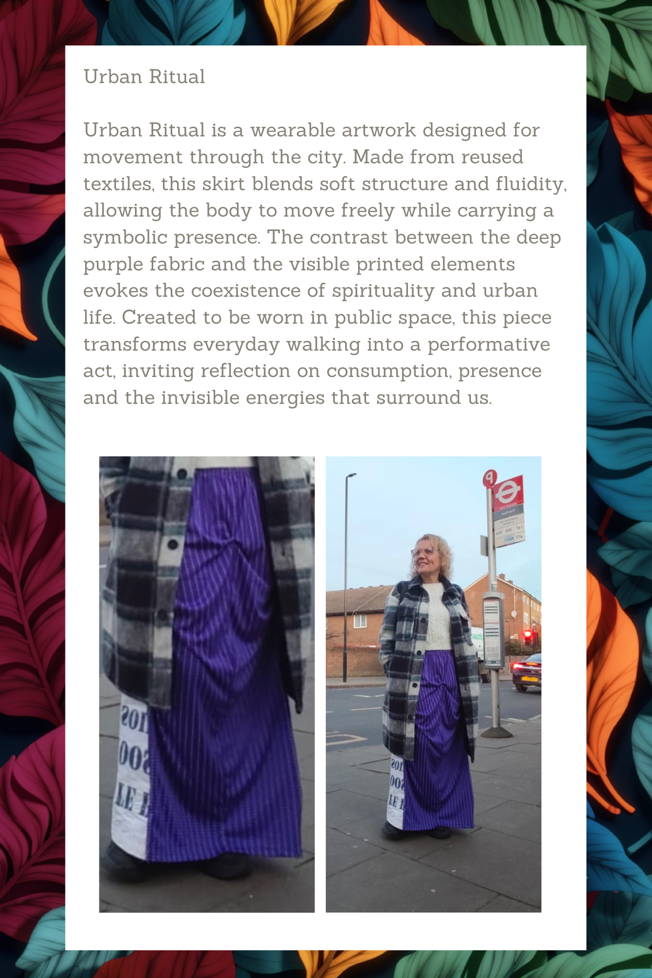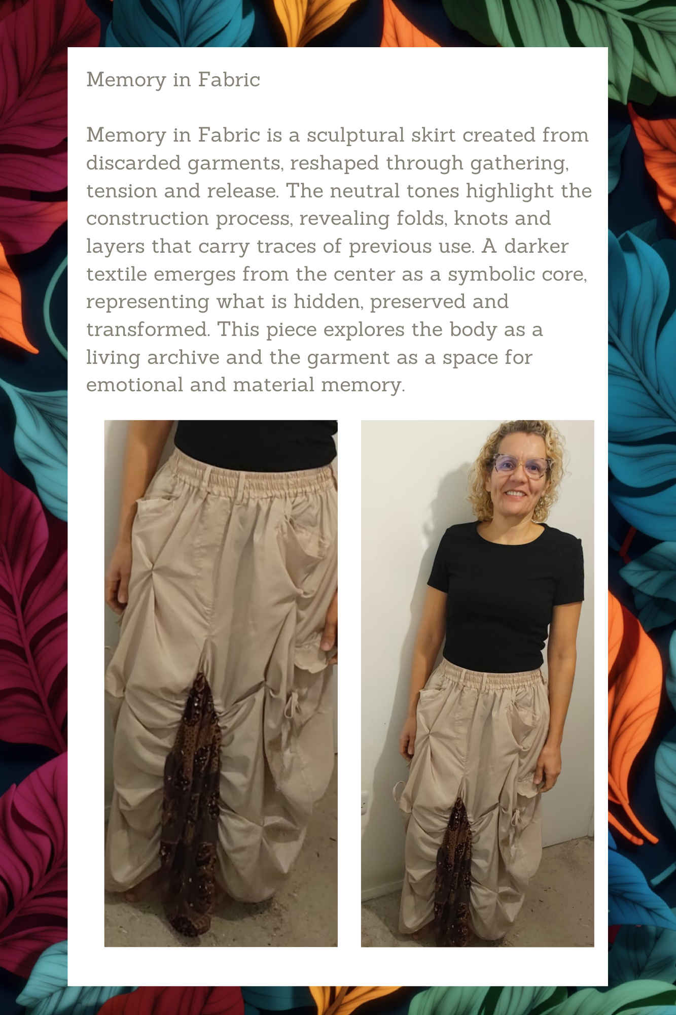 After participating in the London Design Festival, I felt a new calling: to extend this message through upcycling fashion. Using discarded materials, dried leaves, and natural dyes, I create one-of-a-kind garments that carry the same essence of transformation present in Brazilian craftsmanship.